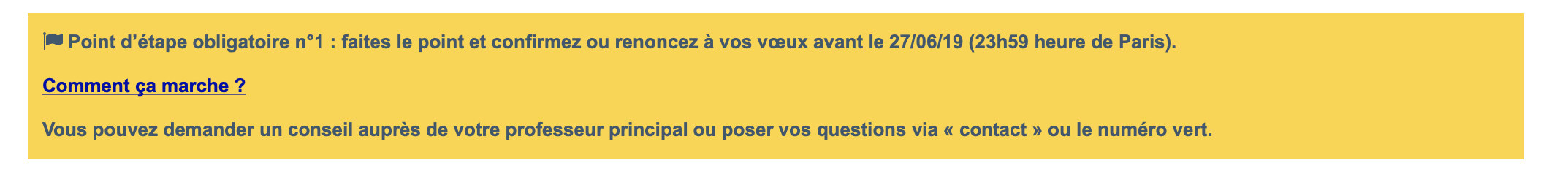Parcoursup point d’étape message