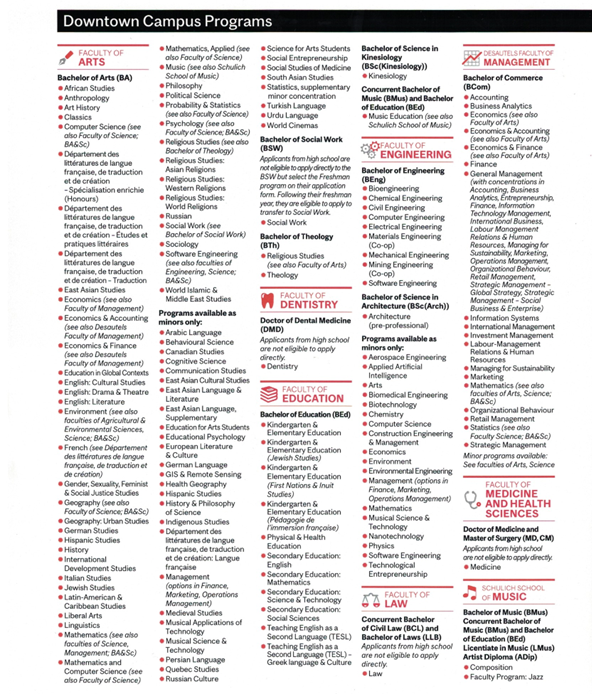 MCGILL LES PROGRAMMES