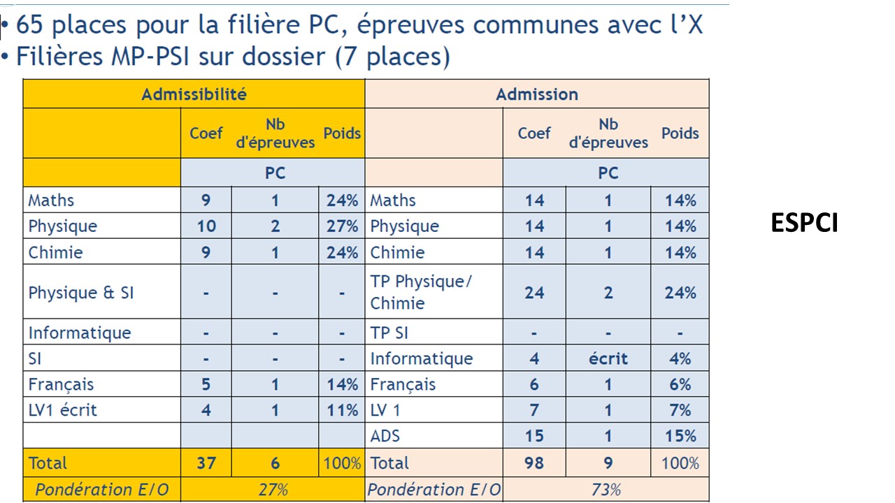 ESPCI poids des épreuves par filière