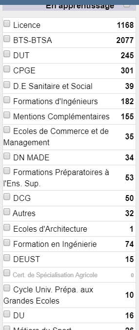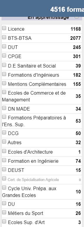 Liste formations dispo Parcoursup